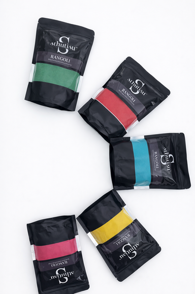 A splash of colour and a symbol of welcome, rangoli powder weaves joy and auspiciousness into every threshold; its vibrant hues celebrate tradition, inviting positivity and prosperity to home.
